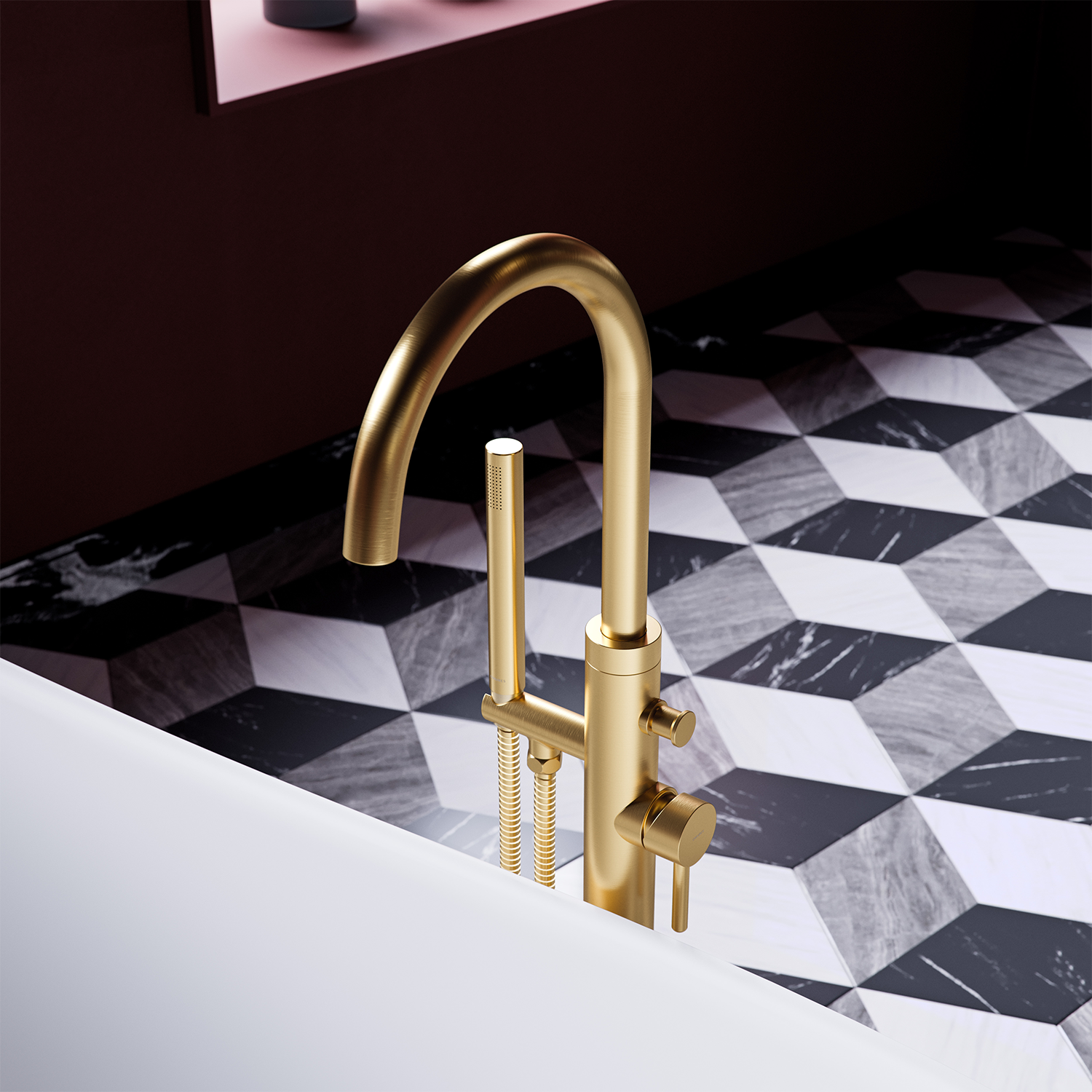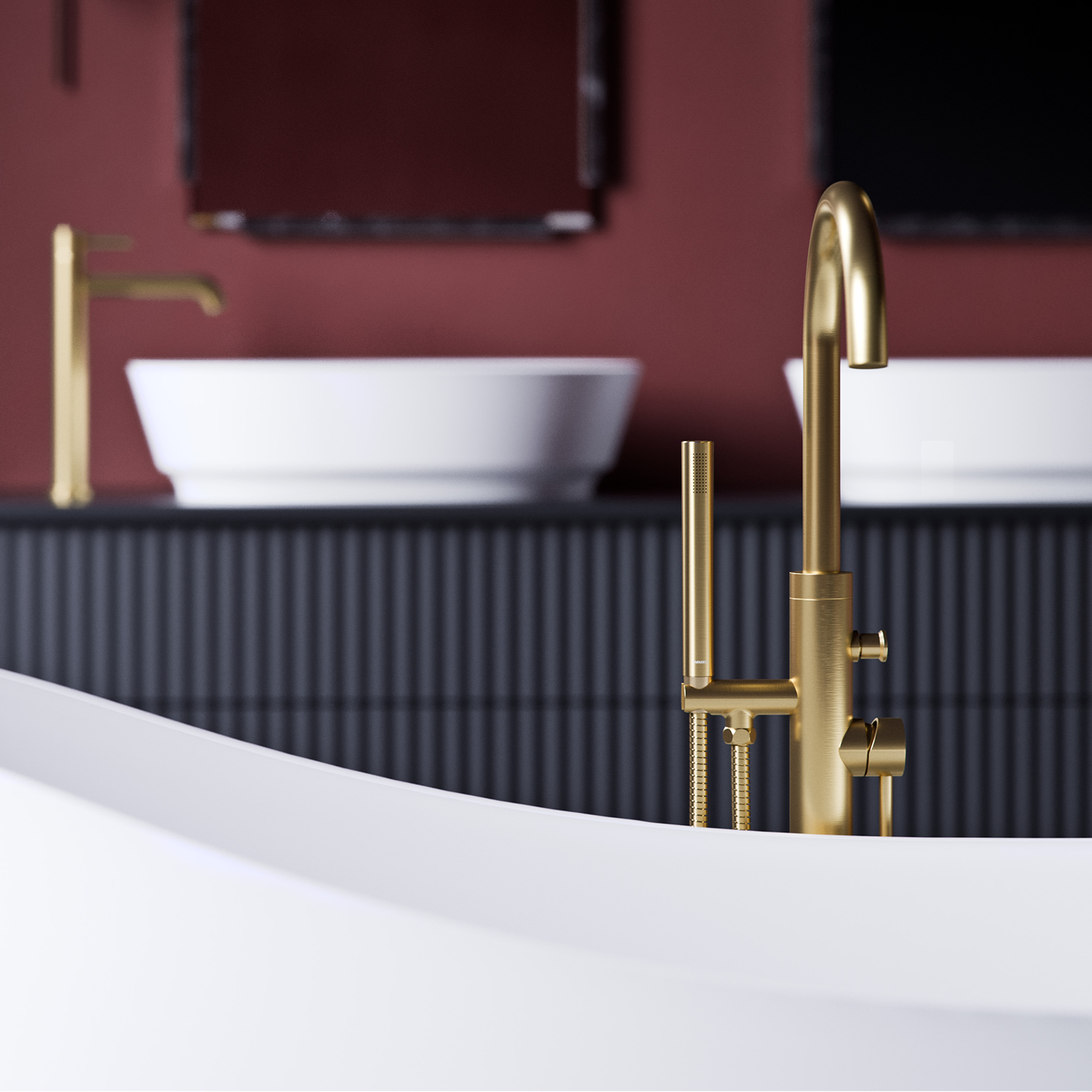 Brushed Gold Frístandandi baðtæki - Y Collection