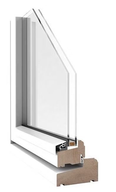 Gluggarnir eru úr límtré - furu, meranti eða öðrum viði ef óskað eftir.