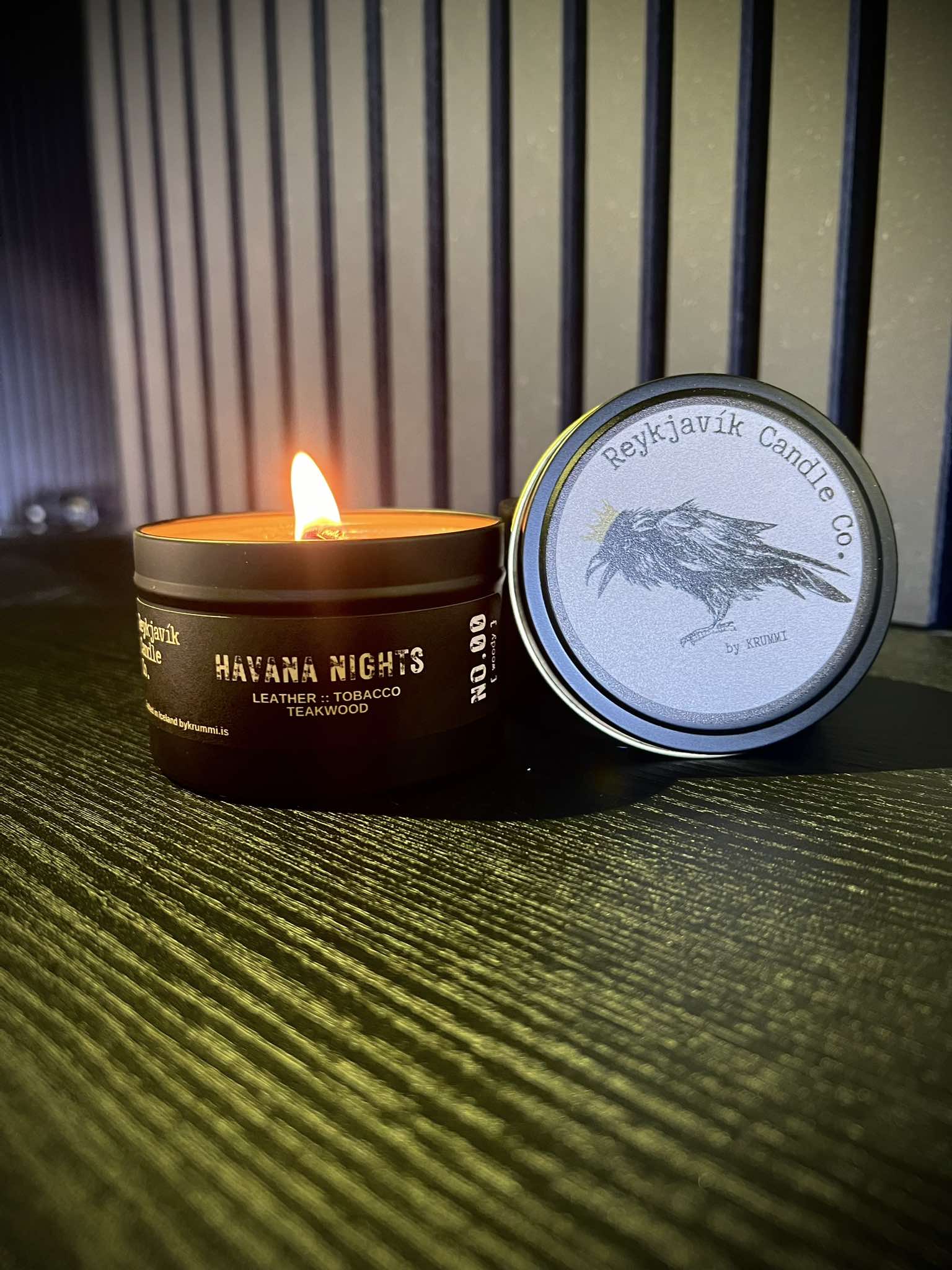 HByKrummi ilmkertin eru íslensk hönnun og framleiðsla. Kertin eru úr 100% soyavaxi og ilmurinn er fenginn úr hreinum ilmolíum. 200 g ilmkertið kemur í svartri áldós með loki.