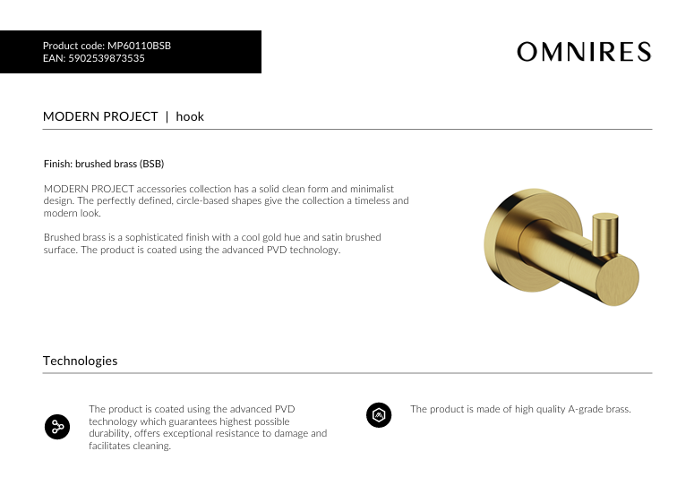 Krókur Einfaldur (Brushed Brass)
