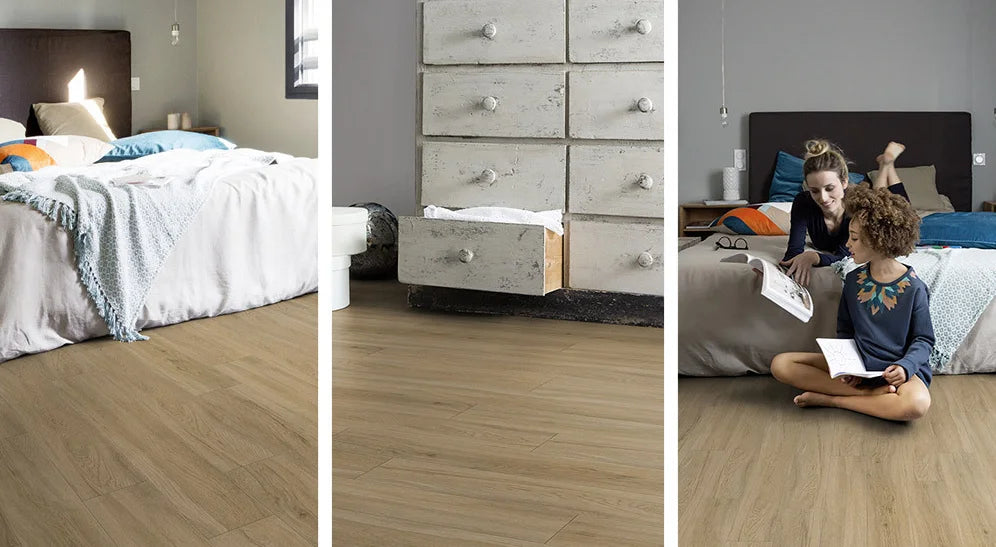 Að hafa möguleikan á að líma vínilinn beint niður gerir gæfu muninn. Þú losnar við óþarfa læti sem koma þegar flöturinn losnar frá yfirborðinu og þökk sé gúmmísamsetningunni sem vínillinn býr yfir þá virkar hann sjálfur sem hljóðdempari.