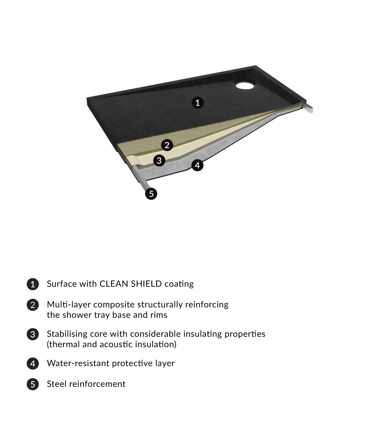 Matt yfirborð sturtubotnsins, með áferð sem líkist náttúrusteini, er húðað með CleanShield bakteríudrepandi tækni.