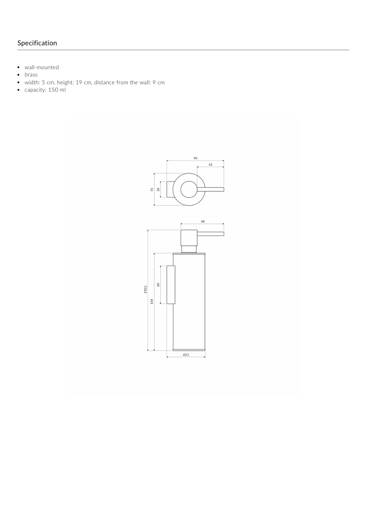- width: 5 cm, height: 19 cm, distance from the wall: 9 cm