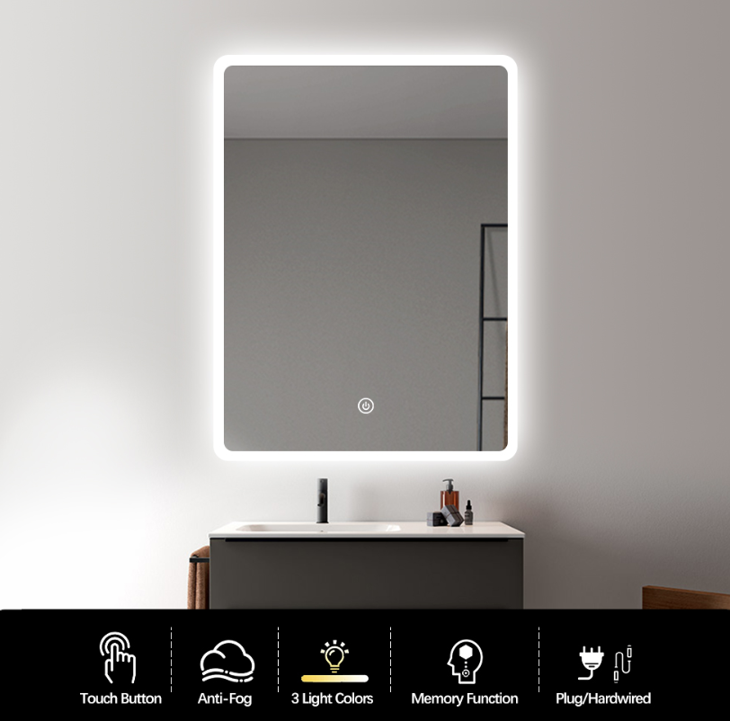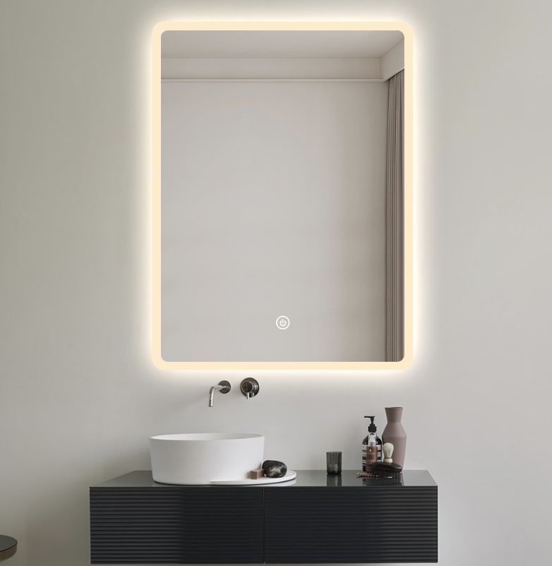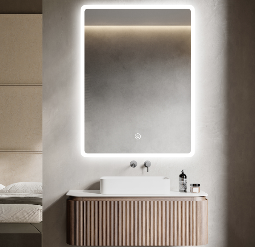Nútímalegur baðherbergisspegill með möttuðu frágangi á brúnum og LED-lýsingu