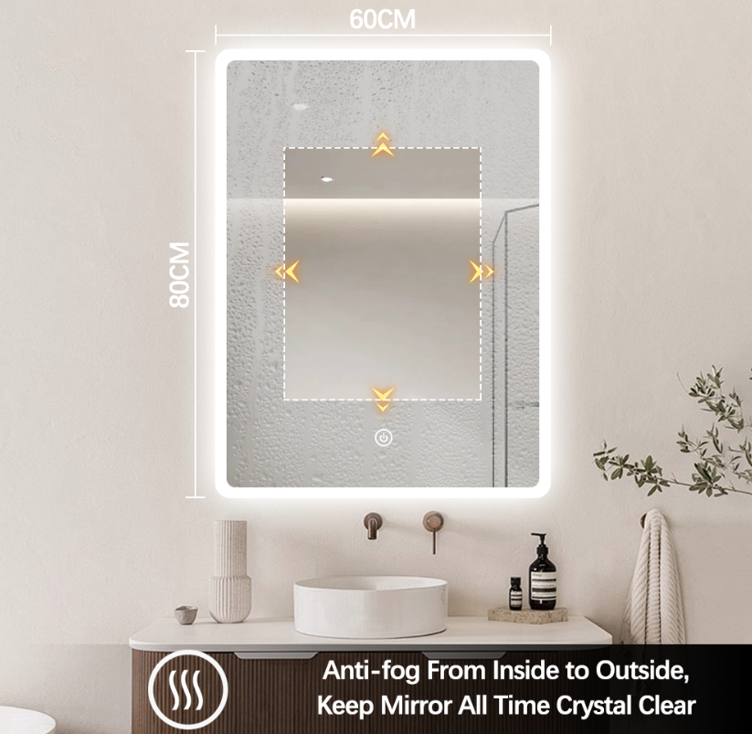 Stærð : 80×60 með LED-lýsingu, hitamotta