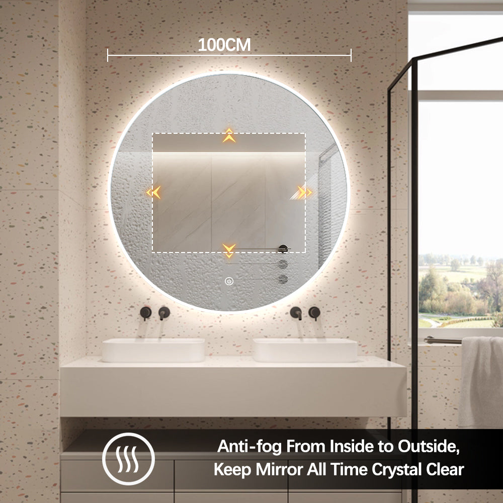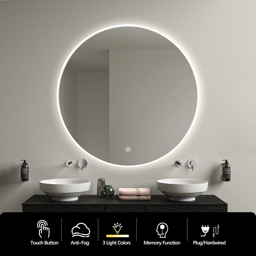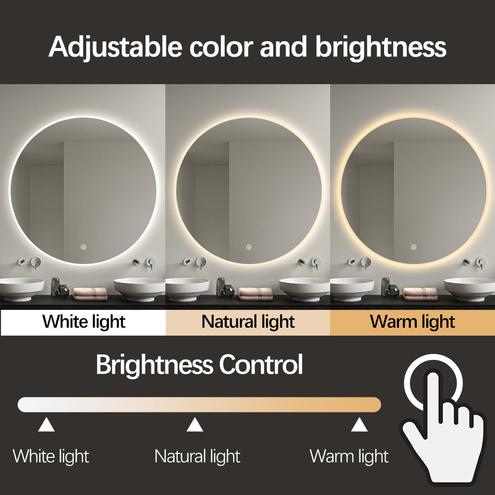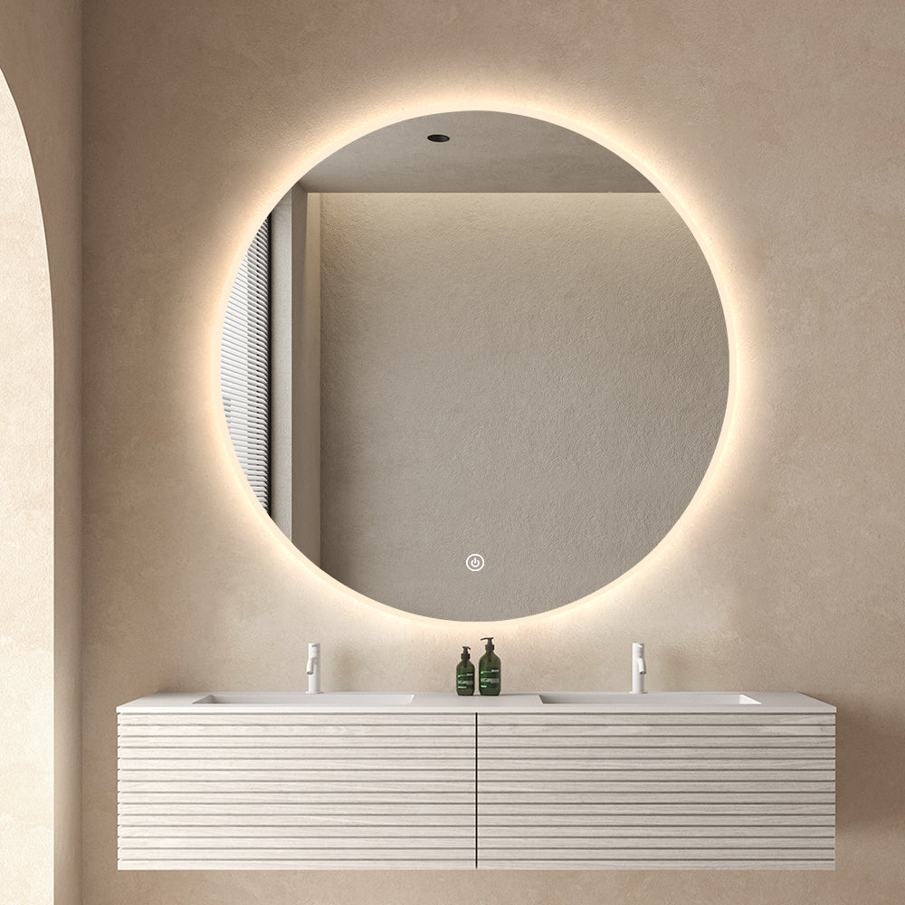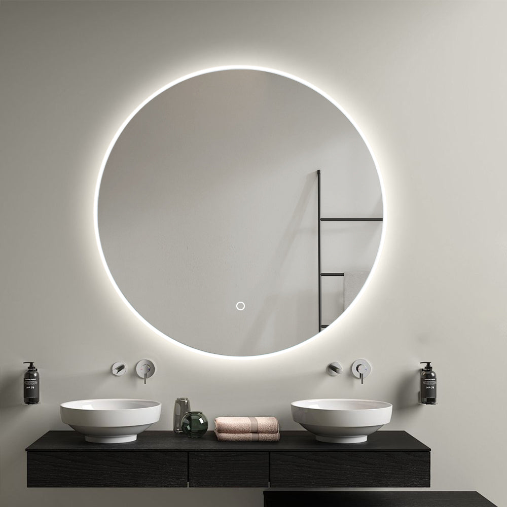 Kringlóttur spegill með nútímalegri LED-lýsingu tilvalið fyrir daglega snyrtingu.