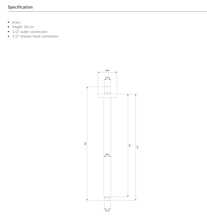 SHOWER ARM | ceiling shower arm, 34 cm