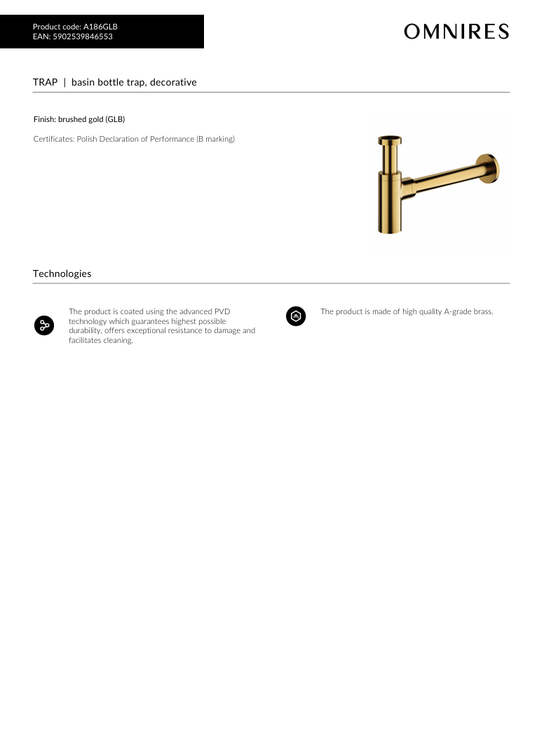 Vatnslás Brushed Gold