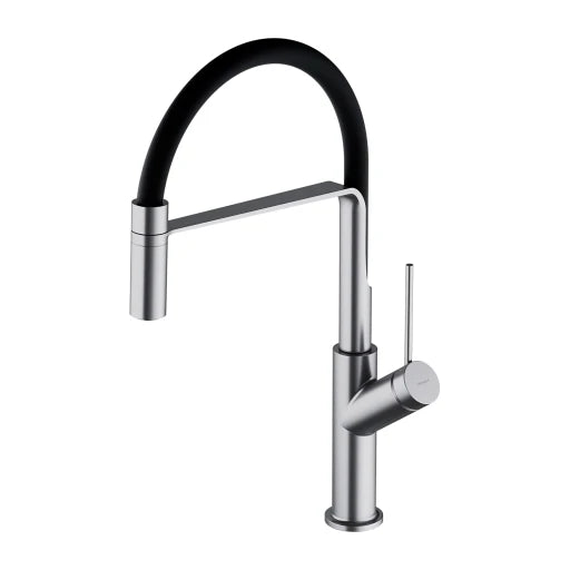 Sveigjanlegt svart gúmmí hlutverk stútsins eykur notendavænni og þægindi, á meðan kjörhæð blöndunartækisins gerir daglega notkun einfaldari.