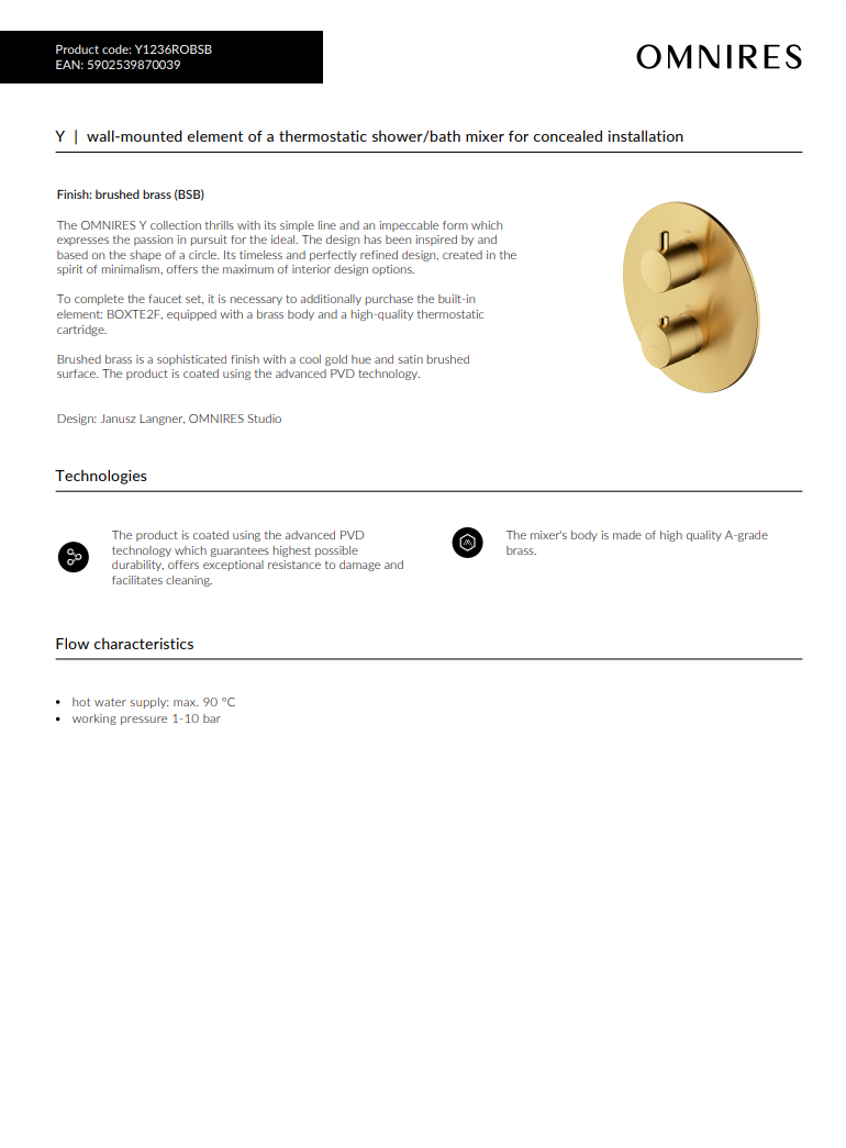 2 rása Frontur fyrir innbyggt sturtu/baðtæki Brushed Brass