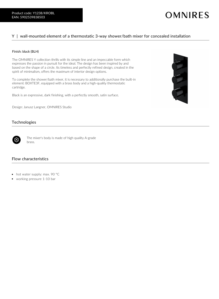 Svartur mattur 3 rása frontur á BOXTE3F innvolskerfið frá Omnires.